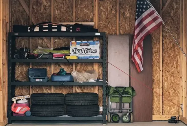 外観の主役にもなっている、2台の車がそれぞれ収まるガレージ。雨の日でも家族みんなが濡れずにそのまま家のなかへアクセスできるほか、カー用品やアウトドアグッズも格納。当初は道路側へ向いた設計でしたがご主人と現場に足を運ぶなかで向きの変更を行い、ウッドデッキや庭のスペースともつながる場に。ここでBBQを楽しんだりと、半屋外スペースとしても活躍しています。