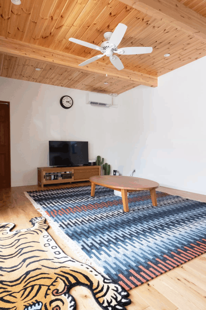 全体に通じるテイストは、奥さまが大好きな「ポップで愛らしくてどこか抜け感のあるアメリカンなキャラクター」たちと無垢材などの自然素材&インダストリアル。雑貨や照明、ラグなども家を建てる前から揃えられていてほぼ施主支給、奥さまはDIYで家具や小物を制作されるほどのバイタリティの持ち主です。(本業はセブンイレブンの店長さん!)
