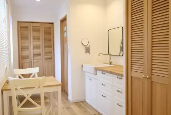 こちらの事例は、「ホテルのようにくつろげる空間」をコンセプトに、白を基調とした「Farm Style」※で全体を統一しました。 オークの無垢材の床、木製ドアを使い、キッチンも造作。 他にも、お好みのテイストや雰囲気をとりいれた内装デザインを提案いたします。