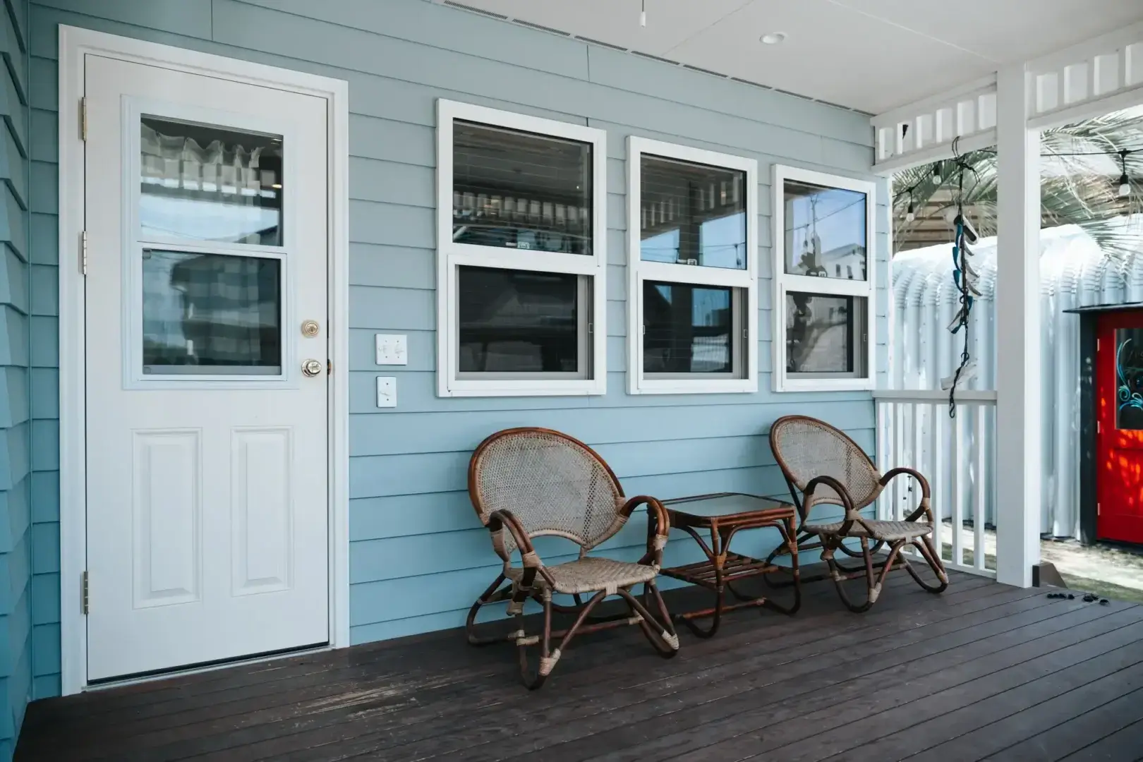 一般的なウッドデッキと違い、しっかりと庇がかかっているので、