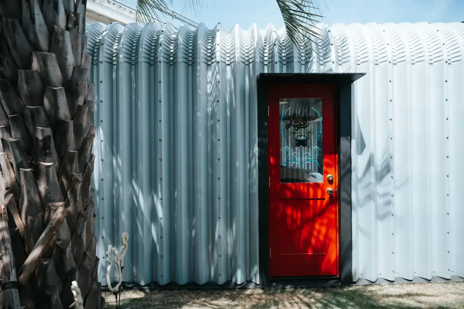 カリフォルニアを思わせる抜け感のある外構とスチールガレージ。