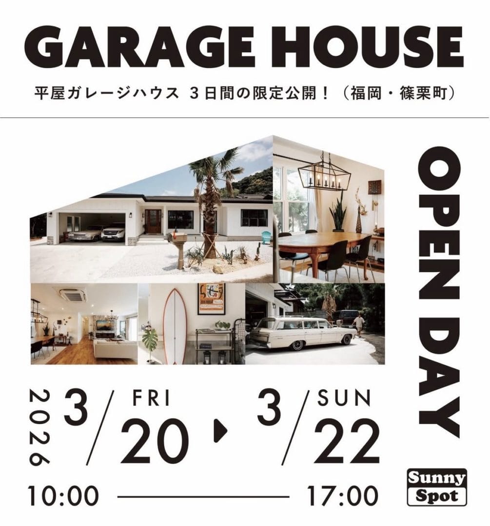 福岡でも福岡県篠栗町にて、平屋ガレージハウスの見学会を行います☟