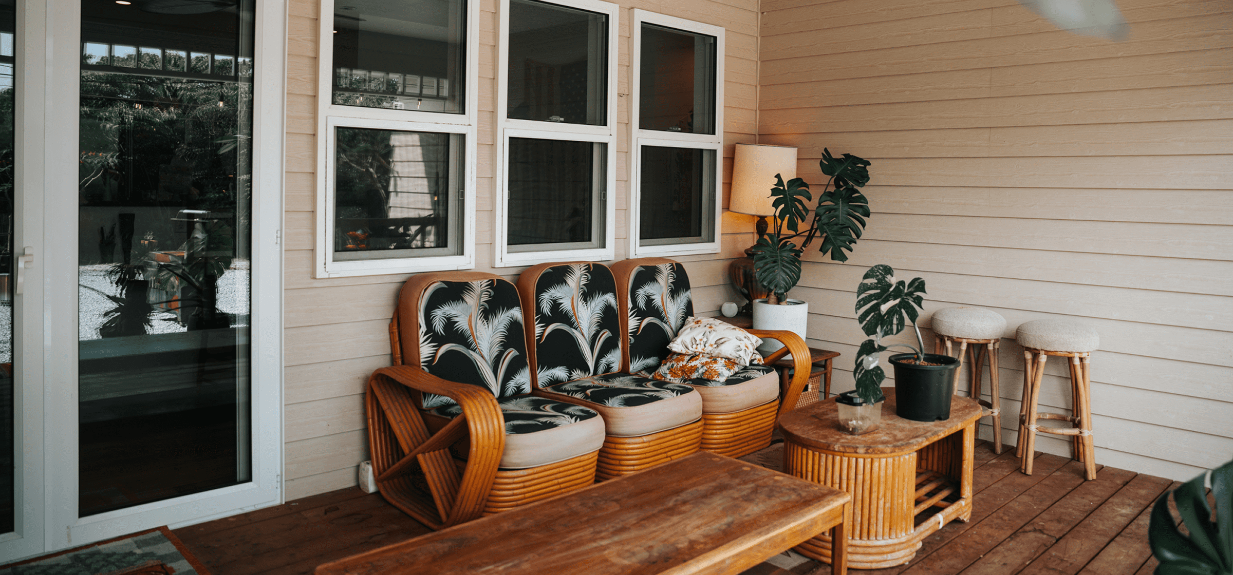 デッキで朝日を浴びるコーヒータイムや、夜風にあたるひととき。