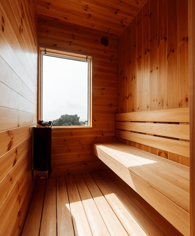 浴室一体型や脱衣所併設サウナを計画。温冷交代浴が自宅で完結し、仕事終わりの疲れも短時間でオフ。断熱・換気・防湿を前提に、コンパクトでも“ととのう”環境をつくります。