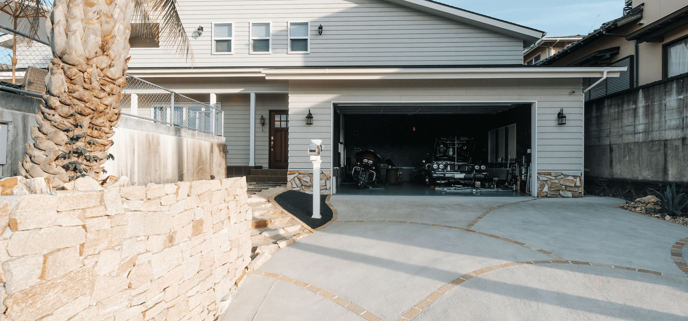 クルマやバイク、ボードやギアまで。電源・換気・耐油床・壁下地を最初から整え、メンテも収納もストレスなく。室内と視覚的につながる窓で“眺める楽しさ”も足します。